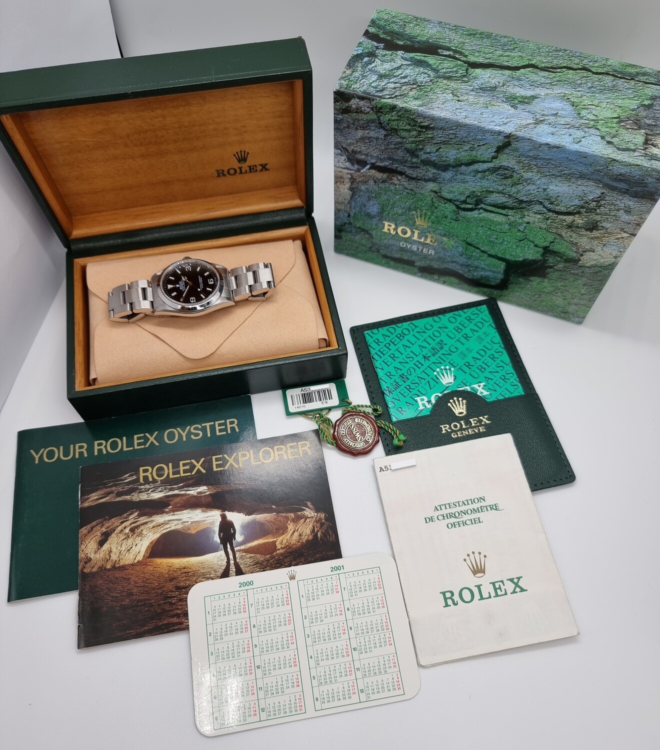 This stunning Rolex Explorer is on a A Serial number and sold in 2000 is presented in exceptional condition. This watch is a truly beautiful example and a real collectors item with correct dial, bracelet (78790) & clasp (X code), end links (558B) with the 3000 movement.