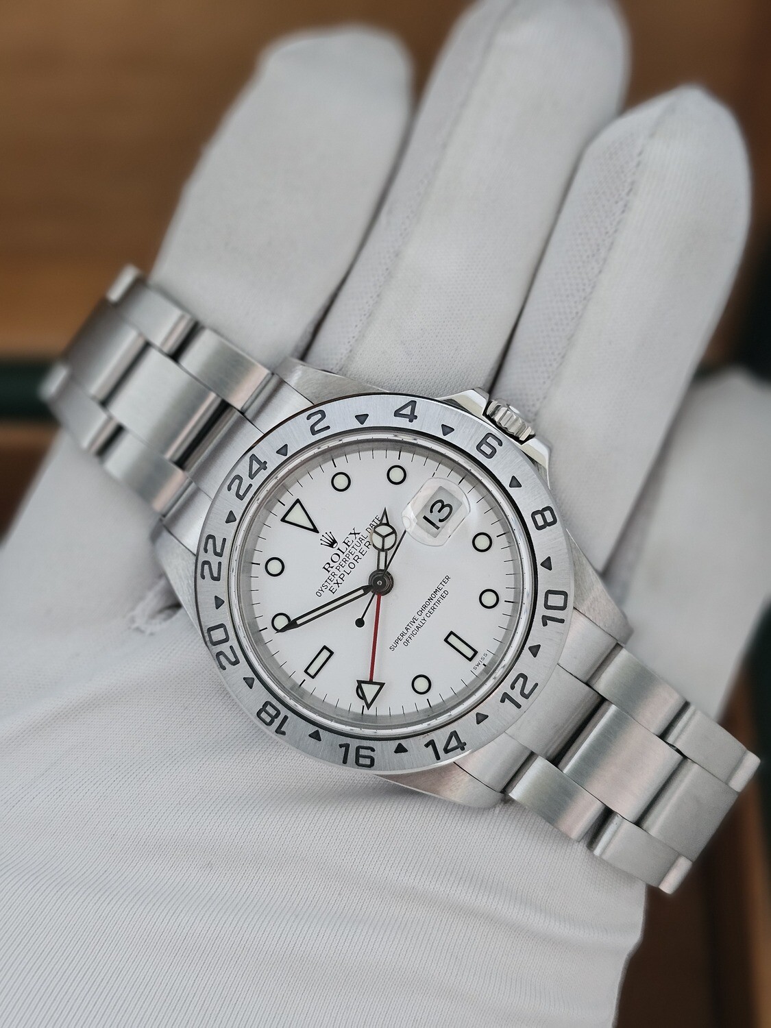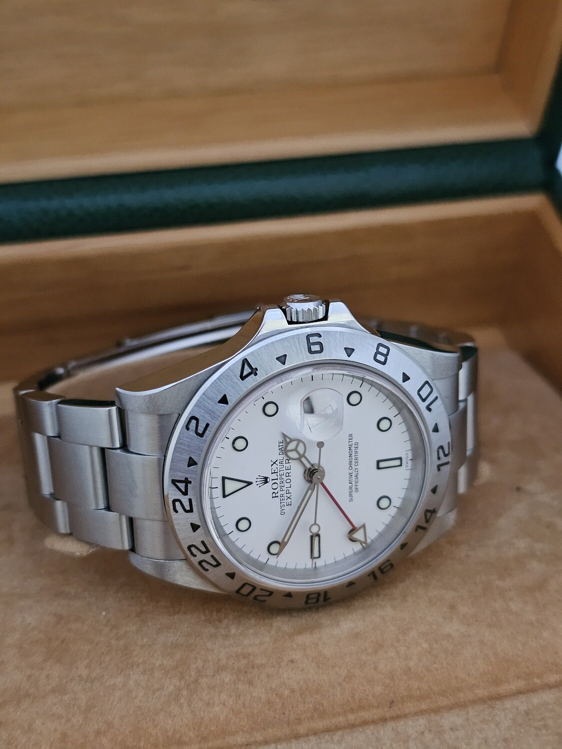 As you can see presented in excellent condition is this White dial Explorer II 16570. This modern classic Rolex is in beautiful original condition and with the desirable 'Swiss' only dial.