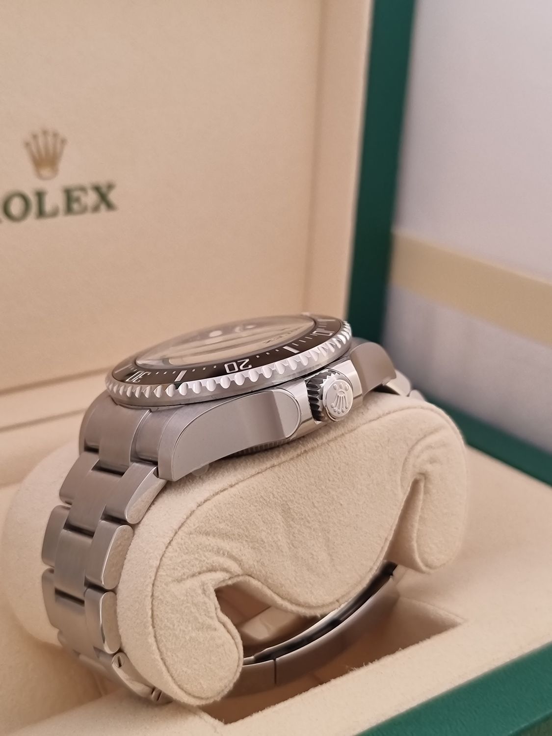 This is a 44mm Rolex SeaDweller Deepsea 'James Cameron' with that beautiful blue and black dial and Cerachrom bezel. The watch was registered in September 2020 and is in excellent working condition fully complete as you would expect with the inner/outer box, guarantee card, manuals, tag, and remaining 1 years Rolex warranty.