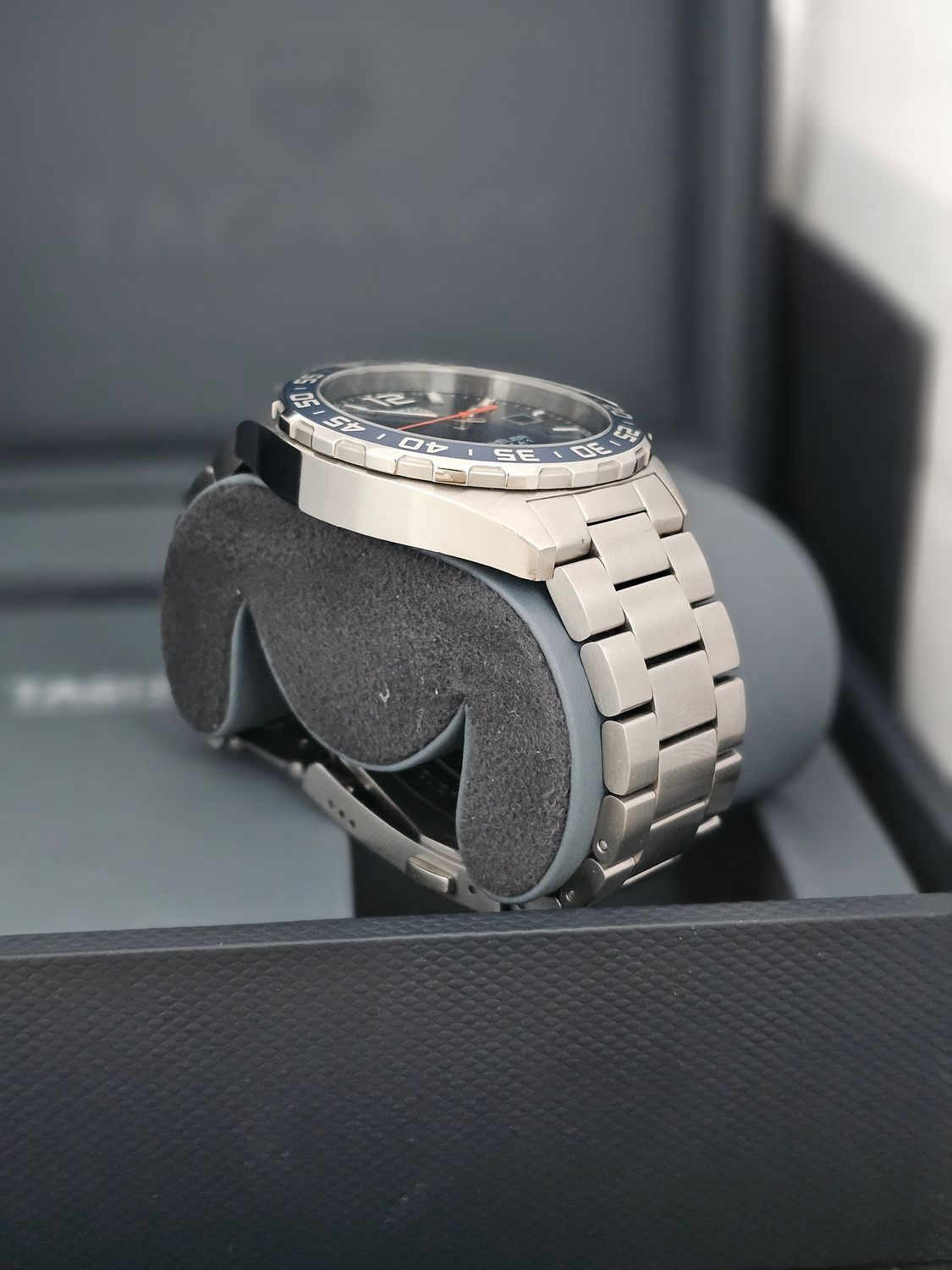 As you can see this Tag Heuer Formula 1 with the lovely sunburst Blue Dial is presented in excellent condition as you can see from the photos. Some light hair line marks on the side case but otherwise very clean. The sapphire glass is perfect with no marks, as is the blue bezel. The watch was purchased in 2022 and comes complete with original box, booklet and warranty card. The watch is running perfectly and keeping excellent time as you would expect.